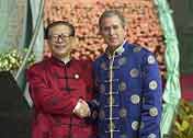 | Chinese Prsident Jiang Zemin and Australian Prime Minister John Howard in Chinese-Style Costumes.(10/21/2001) |
