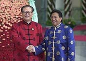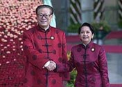 | Chinese Prsident Jiang Zemin and Indonesian President Megawati Soekarnoputri in Chinese-Style Costumes.(10/21/2001) |