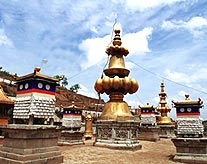 The Grand Golden Tile Hall is one of the oldest and most important buildings in the Gumbum Lamasery, known as the "Ta'er Temple" in Chinese.