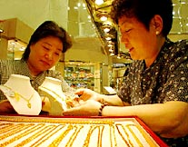 In China Art and Crafts Plaza, ordinary Chinese people crowded to buy the small gold bars, while the pure 10-gram ones were hot sellers.