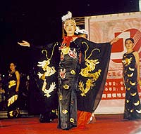 Photographs of the 43 clay statues in Jinci Temple are not allowed. But some of the press were soon able to catch another image of their beauty in "Elegance of Jinci" and other performances in an evening's entertainment sponsored by the municipal cultural bureau in Taiyuan's central May 1st Square. One day after our press group had enjoyed the tranquility of Jinci Temple located about 15 miles southwest of Taiyuan city proper -- we met the clay statues again in a very different guise and setting in an urban park in downtown Taiyuan. As electronic amplifiers projected music, elegant women in costumes representing the 43 clay statues of Jinci Temple appeared on a makeshift stage in the biggest urban square in Taiyuan. Walking with a grace and dignity that wowed the local crowd, the women in the "Spirit of Jinci" performance put on a modeling show dressed in Song Dynasty costumes accompanied by men standing in the background with hats designed in the shape of the Goddess Mother Hall itself. The "Elegance of Jinci" was just one of several performances that included themes in which the models paid tribute to Taiyuan. Other presentations acknowledged the importance of the railroad to the city, and the coal and steel mines, for instance.