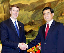 Frist, who also met separately with Wu Bangguo, chairman of the Standing Committee of the National People's Congress and Chinese State Councilor Tang Jiaxuan, said he agreed with Hu on US-China relations, noting the US side supports US President George W. Bush's commitments to Chinese leaders and adheres to the one-China policy.