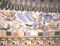 Dunhuang has an increasing number of tourists each year, Fan said. In 1979, Dunhuang received about 30,000 visitors, the figure rising to 200,000 in 2000, and 310,000 in 2002. This large number is surely to affect the murals over time. Of the 735 caves in Dunhuang, 492 were found to contain frescos -- the very large ones exceeding 200 square meters. The middle caves are only 30 to 40 square meters while the smallest one is only several square meters. As a middle cave receives thousands of visitors a day, the temperature and humidity will surely improve. However there is no data currently to show how many visitors a day affect the murals and how much that influence will be. Last Spring, the Dunhuang Research Academy set up special equipment in these caves to investigate and once a conclusion is drawn, tourists will have to make appointments before their traveling to see Dunhuang.