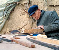 Just like the Song Family in Shandong, the five Chen brothers regard their adherence to traditions of quality as the key to their success. They use only the finest hardwood, which is sawn into planks of even thickness. Then they are glued together on the wooden frame. The rim is planed smooth and the surface is polished.