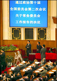 The members of the CPPCC National Committee also observed the Second Session of the 10th National People's Congress (NPC), the top legislature, and agreed to the Report on the Work of Government, the draft amendment to the country's Constitution, and other reports.