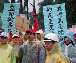 The group was the tail end of a mass rally, initiated by the opposition coalition of the Kuomintang and People First Party on Saturday.