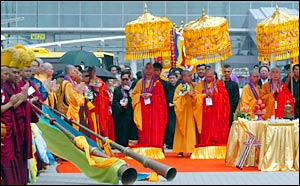 After a farewell ceremony attended by thousands of pious Buddhists, the sacred relic left home with a 75-member welcome delegation from Hong Kong, an escort delegation of 72 and 30 guards from the mainland.