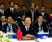 Premier Wen Jiabao met Japanese Prime Minister Junichiro Koizumi and President Roh Moo-hyun of the Republic of Korea in Vientiane on Monday to discuss East Asian cooperation as well as regional and international issues. The three leaders are here to attend the 8th ASEAN+3 Summit.