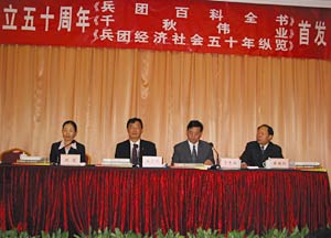 On the eve of the 50th anniversary of the Xinjiang Production and Construction Corp (XPCC), three books providing comprehensive coverage of its development were published. At a press conference held on September 24 in Urumqi, the capital of northwest China's Xinjiang Uygur Autonomous Region, representatives from the XPCC and the books' publishers talked about the long history of the organization and the books that describe it.