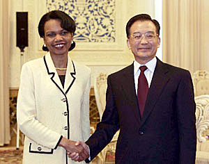 Rice is on her first visit since she became the top US diplomat as guest of Foreign Minister Li Zhaoxing. She met and exchanged views with Chinese leaders on US-China relations, the Taiwan issue, the Korean Peninsular nuclear issue and other areas of mutual interest.