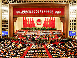 The 10th National People's Congress convened its Third Session in Beijing on Saturday morning. Premier Wen Jiabao delivers a government work report. In his report, Wen reviewed the social and economic development in 2004 and outlined the work tasks for the year 2005.