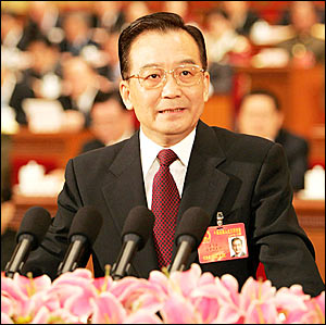 For the year 2005, Premier Wen said in his report said China will gear down its high-octane economy to a level lower than the stunning 9.5 percent registered in 2004, as the government targets an "appropriate" 8-percent GDP (gross domestic product) growth rate this year.