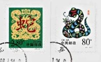 The stamp with a set for 2 entries for the Spring Festival will be issued by Beijing Stamp Company on Jan 24th, 2001 on which was sticked Dragon and Snake Stamps. It is reported that there are the postmarks with 24:00 of Jan 23th and 0:00 of Jan 24th on the stamps to express the expections of the people.
