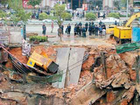The residential and commercial construction site was close to the intersection of Caitian and Binhe roads, near a supermarket. North-south traffic on Caitian Road was halted for an hour.