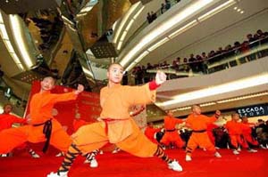 Hong Kong's Festival Walk, a fashion-oriented shopping mall in Kowloon, has invited Shaoling Kungfu monks to show off their martial arts from February 4 to 6 to entertain Hong Kong citizens and usher in the lunar new year.
