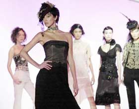 Models present new creations by famous Hong Kong fashion designers in the Conference and Exhibition Center of Hong Kong, China, Jan. 14, 2003.