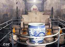 The tomb of Emperor Wanli (reigned 1537-1619) and its underground place are located at the foot of Dayu Mountain southwest of the Changling tomb. Emperor Wanli was buried here in 1620 with two of his wives, Xiao Duan and Xiao Jing. The labor of more than 30,000 workers and 8 million taels of silver (equal to the national land tax revenues of the first two years of Wanli' s reign) were spent on the project. It was completed in six years (1584-1590).