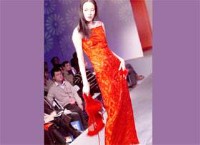 A model shows a fashion designed by Lu Ying, chief Designer of Shenzheng Disiping Fashion Co. at the 4th China International Fashion Festival held in Beijing December 10, 2000. Some 31 fashion designers from China, Italy, France and Japan will show their latest fashion.