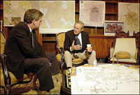 Later the secretary visited the northern major city of Mosul, 300 km further north, where he was offered by the 101st Airborne Division a bird's eye view of the site where Saddam Hussein's sons were killed.