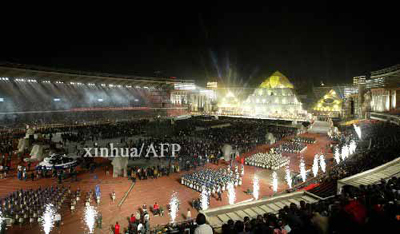 The super grand sight opera "Aida" is staged at the Beijing Workers' Stadium in Beijing Sept. 27, 2003. The opera, having a floor area of stage of over 6,000 square meters and involving more than 4,000 performers, is the largest of its kind in the world.