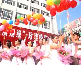 All wedding ceremony promotion companies in Tianjin are now in booming business. All their wedding cars have been rented and tables in luxurious restaurants are almost all booked.
