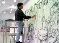 Gao is still busily working on the colossal project, which includes 35 oil paintings and five groups of sculptures on a span of three exhibition areas.