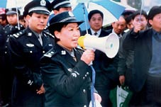 In April 2001, Ren Changxia was appointed director of the Public Security Bureau in Dengfeng City, Henan Province. Ren was the first female director of public security in the city as well as the province. Over the past three years, to "serve the people wholeheartedly," Ren strictly administrated the police force, seriously heeded the opinions of local residents, and severely cracked down on crimes. Thanks to Ren's efforts, social order in Dengfeng became better and better, ensuring peace and security for the residents.