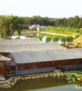 If you go to the Mountain Village website , you will see -- from a higher vantage point -- the view I was looking at from the teahouse. The white marble deck is used for performance, while people can sit on the other side of the pond by the teahouse to watch the show. The white crooked bridge on the right is also marble, Suzhou style, and leads to some single-room apartments in a community dedicated, according to its brochure, to a residence for the elderly that is “high level, high quality, high affinity, high personality and high humanity.”
