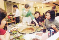 The most popular soup, also the cheapest one, is “yuan yang guo” (the hot pot is separated into two part, which is like the mandarin ducks that always appear in pairs).