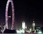 The London Eye, part-owned by British Airways, is 135 metres (450 feet) tall and is now the world's largest observation wheel, according to the Guinness Book of World Records' Web site (http://www.guinnessrecords.com).
