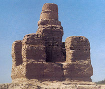 The pagoda is situated in Asitana Village in Turpan, which is also called Sanbao Village. There was a big Buddhist temple in the village from the sixth to the seventh century, but the temple was destroyed a long time ago and only the pagoda remains.
