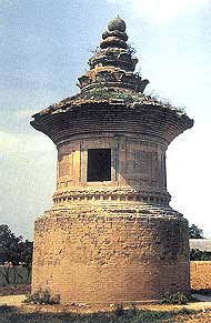This pagoda was the tomb of Master Eanzhou, an eminent Buddhist monk of the Tang Dynasty. It is located on the site of Baoguo Temple, where the monk had stayed, at Beiqu Village, about five kilometers northwest of Yuncheng. According to an inscription on the pagoda, it was built by an army commander of the Tang Dynasty in 822 after the death of motif, Fanzhou.