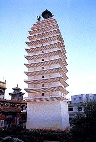 In the ancient city of Kunming stand two ancient pagodas, one in the east and the other in the west. West Pagoda used to be located in the now nonexistent Huiguang Temple. The temple used to be called West Temple, so the pagoda was named West Temple Pagoda. Now only the pagoda remains.