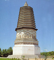 This pagoda, built on the site of the middle capital of the Liao Dynasty in Ningcheng County near Chifeng City, is called the white Pagoda because it is painted white.