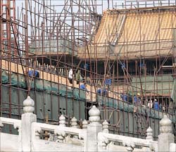 The renovation already has consumed 330,000 bricks, and 590,000 tiles for the palace's distinctive mustard-yellow rooftops.