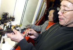 After a long and concerted search, people from the Shanghai Artists' Association and the Shanghai Puppet Play Troupe located Ju Moxu, a sixth-generation descendant of Mao Genyu, the founder of shadow puppet plays in Shanghai.