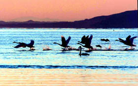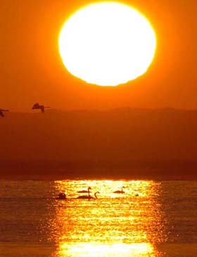 A flock of white swans are frolicking at the Dalinor Lake, Inner Mongolia on Oct 6th. Tens of thousands of white swans have flown from Siberia to the Lake recently. Dalinor is a National Natural Reserve comprising grassland, lakes, wetland, sand and woods. It is home to 160 kinds of rare birds.