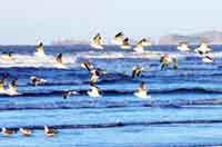 More seagulls appear in the bathing beach in Yantai, Shandong Province, in early March thanks to bright and warm weather.