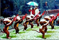 Shanghai enjoys the first snowfall of the year. The city is decorated with statues of monkey to welcome the Year of Monkey.