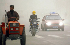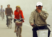 In its capital Yinchuan, people wore masks and cars slowed down and turned on headlights. The visibility dropped to 500 meters at 3:30 p.m. Tuesday.