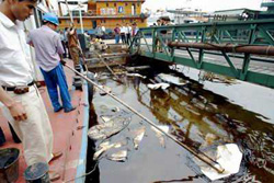 "But the floating bridge also blocked out our ships. The workers had to climb down the bank to approach the polluted areas."