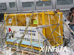 Lan Jingchao, a zoologist from the Chengdu Giant Panda Breeding and Research Center, who escorted Xiongbang on board the plane, said the two-year-old male giant panda is in good condition and was at ease throughout the three-hour flight.