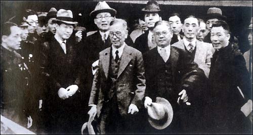 In March 1940, Tan Kah Kee (first from left, front row) arrived in Chongqing with the Delegation of Overseas Chinese in Southeast Asia Returning to the Motherland to Express Sympathy to the Anti-Japanese Forces. Leaders of the Southern Bureau of the Party met with him many times. Tan Kah Kee is shown here meeting with representatives from various circles.
