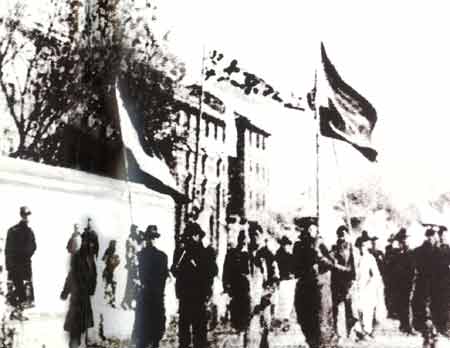 Thanks to the influence of the correct leadership of the CPC and Kuomintang-Communist cooperation, a great revolution against imperialism and feudalism rose around the country. In 1925, the May 30th Movement took place in Shanghai, marking the beginning of a nationwide revolutionary upsurge and laying the foundation for the revolutionary war against the Northern warlords. Known as the Northern Expedition, the war was launched under the slogan -- oppose imperialism and warlords -- raised by the Communist Party. The mainstay of the Northern Expeditionary Army was formed of Communist Party members, members of the Communist Youth League and progressive personages of the Kuomintang (KMT). Along with the victorious advance of the Northern Expedition, the Party-led workers' and peasants' movement grew rapidly, shaking the reactionary rule of the imperialist and feudal forces in China. However, at the critical moment of the struggle, the big bourgeoisie betrayed the revolution, and Chen Duxiu, general secretary of the CPC, pursued an erroneous line of capitulationism. As a result, the revolution failed.