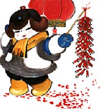 Store owners are busy then as everybody goes out to purchase necessities for the New Year. Materials not only include edible oil, rice, flour, chicken, duck, fish and meat, but also fruit, candies and kinds of nuts. What's more, various decorations, new clothes and shoes for the children as well as gifts for the elderly, friends and relatives, are all on the list of purchasing.