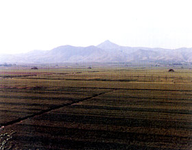 A distant view of Zhaoling, mausoleum of Tang Emperor Tai Zong