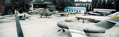 On display in the outdoor exhibition area are several planes, representing the various aircrafts developed at the different periods of the world aviation history, including the military planes used in World War II, such as the American P-51 Model Wild Horse, P-47 Model Lightning, the P-61 Model Black Widow, an earliest fighter equipped with radar for night use in practical war, Model C-47 (i.e. DC-3) transport plane with the service life of 20 to 30 years and Model AT-6 advanced trainer aircraft. The planes manufactured by the Soviet Union on display are the Model IL-14 transport plane propelled by piston engine propellers, Model BO-2 light plane for multiple uses, Model TU-2 piston bomber that distinguished itself in the liberation of Yijiangshan Island, Model IL-10 pursuit plane, Model LA-9 and LA-11piston engine pursuit planes, Model YAK-11 intermediate trainer aircraft, Model YAK-17 advanced trainer aircraft and Model YAK-18 elementary trainer aircraft.