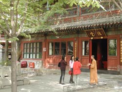 Also on display are the Beiye scripture (Buddhist scripture written on thetalipot palm) in Sanskrit and the scriptures in the writing of ethnic minority groups such as Xixia, Huihu, Dai, Tibet and Mongolian. On the second floor of the Cangjinglou (a building for storing Buddhist scriptures) are the precious collection of the Beizang, Jiaxingzang and the Longzang of the Qing Dynasty as well as the rubbings of the Tripitaka in Tibetan writing and the complete Fangshan Stone Scripture (Buddhist scripture inscribed on stone found at Fangshan on the suburbs of Beijing).