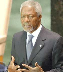 UN Secretary General Kofi Annan denounces the US's Iraqi war issue again on the annual debate of world leaders at the 59th UN General Assembly in New York.