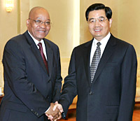 Zuma relayed regards from South African President Thabo Mbeki and former President Nelson Mandela to President Hu. Zuma also expressed his congratulations for Hu on his assuming the post of chairman of the Central Military Commission of the Communist Party of China.